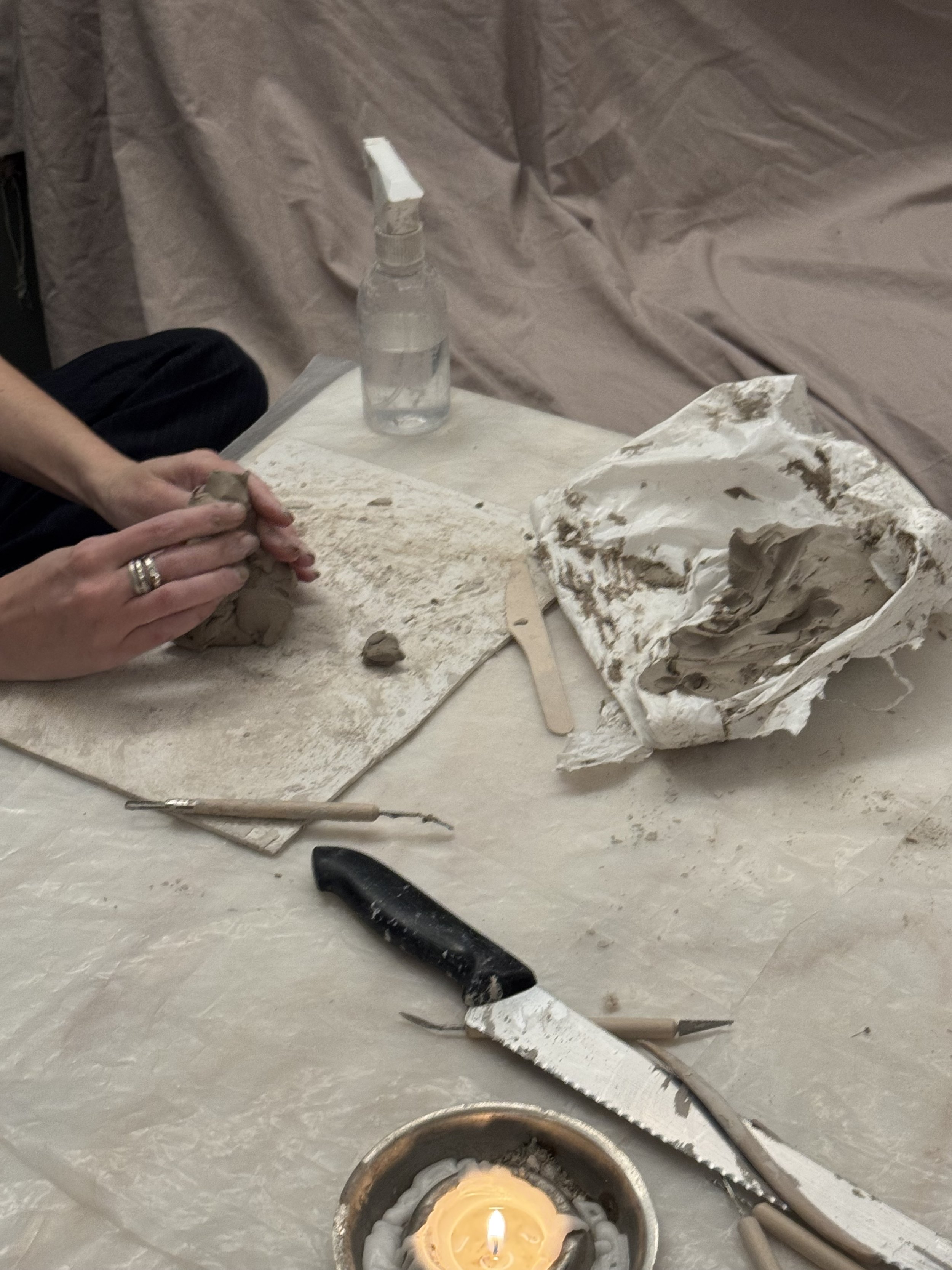 Clay Night is a figure sculpting workshop run by artist Ella Taub in Lisbon. Over two hours, you sculpt a human figure from raw clay — guided step by step, no experience needed. You don't need to know anything about art. You just need to show up.